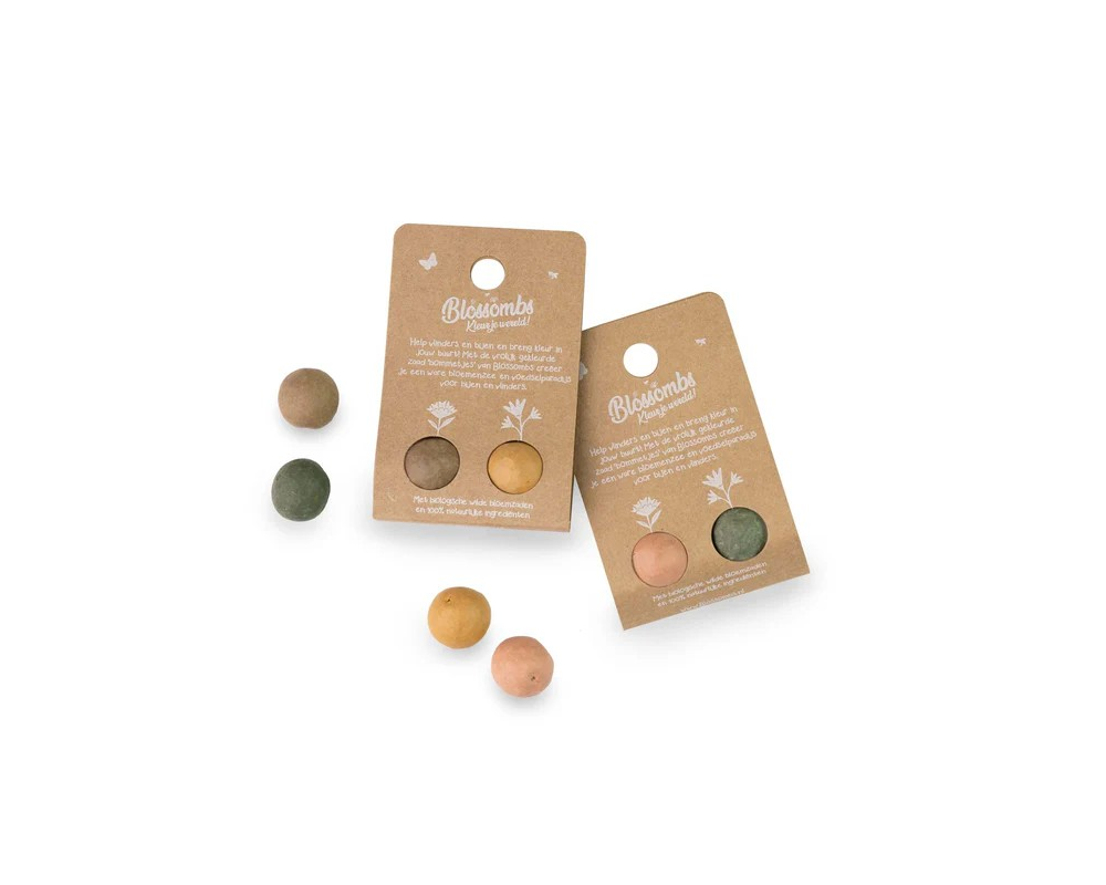 Malý darček vhodný na oslavy, svadby, ako poďakovanie učiteľom alebo len tak pre radosť. Obsahuje dve kvetinové bomby Blossombs, ktoré po rozhodení vytvoria pestrú lúku plnú kvetov – potešenie pre oči, včely aj motýle.