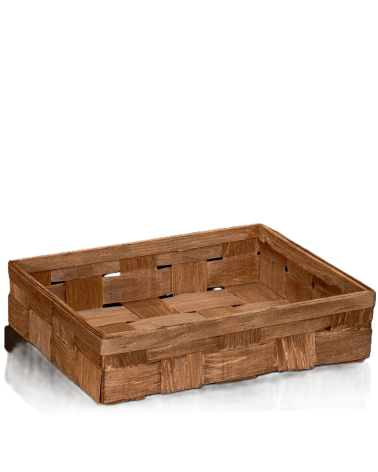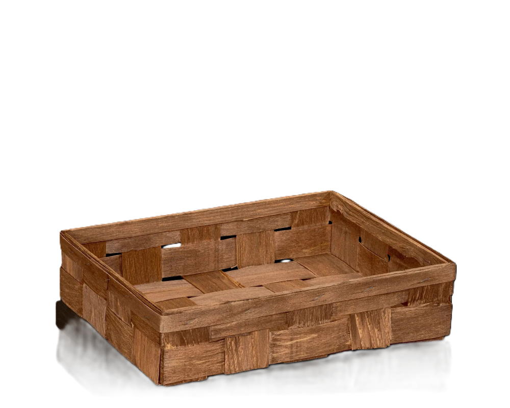 Pravouhlý košík z dreveného španu predstavuje elegantné a ekologické riešenie na zabalenie troch fliaš vína, sektu alebo iných darčekových produktov. Vďaka svojmu rustikálnemu dizajnu dodáva darčeku prírodný vzhľad, ktorý sa hodí na sviatočné aj firemné príležitosti.