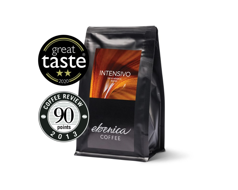 Ebenica Intensivo je starostlivo vytvorená kompozícia prémiových odrodových káv z Južnej Ameriky, Ázie a Afriky. Charakterizuje ju hebká, šťavnatá aróma, v ktorej cítiť orgován a čokoládový krém. V espresse plná, intenzívna chuť hustého sirupu vyúsťuje do kvetinových a čokoládovo-orechových tónov s prvkami čiernych bobulí.