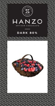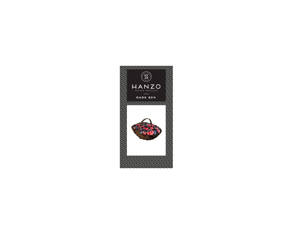 Horká čokoláda s lesnými ovociami od značky HANZO je elegantná kombinácia intenzívnej 72 % horkej čokolády a ovocnej sviežosti. Obsahuje lyofilizované čučoriedky, ríbezle a černice – každé zastúpené v 3 %, čo dodáva čokoláde jemne kyslastý tón a príjemnú chrumkavosť.