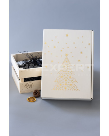 Ekologická výplň a darčeková krabica – čisté biele balenie s prírodnou výstelkou a decentným dizajnom