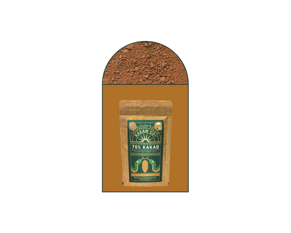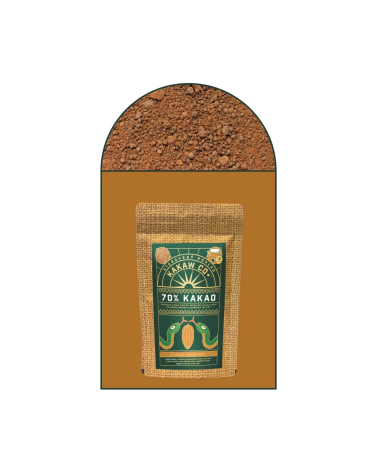 Neodtučnený a nealkalizovaný kakaový prášok z regiónu Meta v Kolumbii, jemne osladený panelou. Prášok obsahuje 70 % čistej kakaovej hmoty vyrobenej z kakaových bôbov v prémiovej kvalite 'fino de aroma' a 30 % panely. Vhodný pre vegetariánov a vegánov, bez aditív.