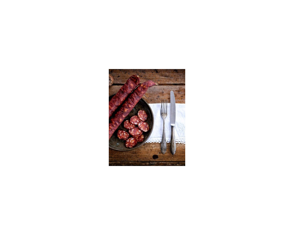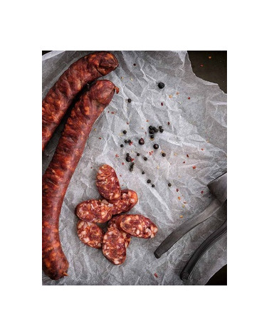Tradičná klobása spod Tatier, ktorá v sebe nesie chuť domácej zabíjačky a vôňu bukového dymu. Vyrobená z 96 % bravčového mäsa, dochutená prírodnými koreninami a cesnakom, plnená do prírodných čriev a sušená v murovaných údiarňach na studenom dyme z bukového dreva. Výsledkom je výrazná mäsová chuť, jemná pikantnosť a autentická štruktúra, ktorá poteší každého milovníka poctivých údenín. Bez lepku, bez alergénov, vákuovo balené.
