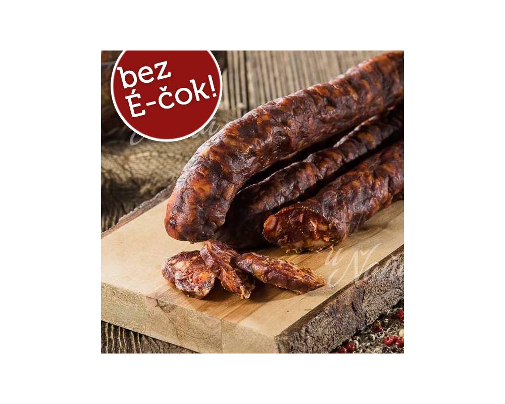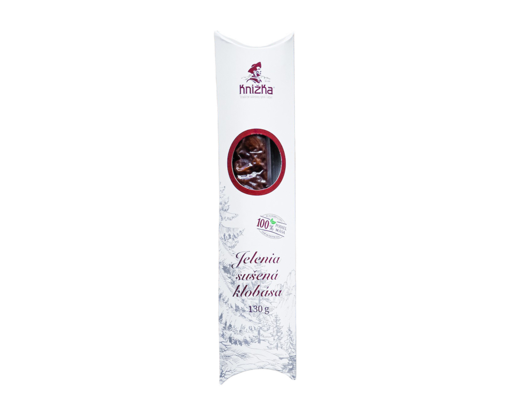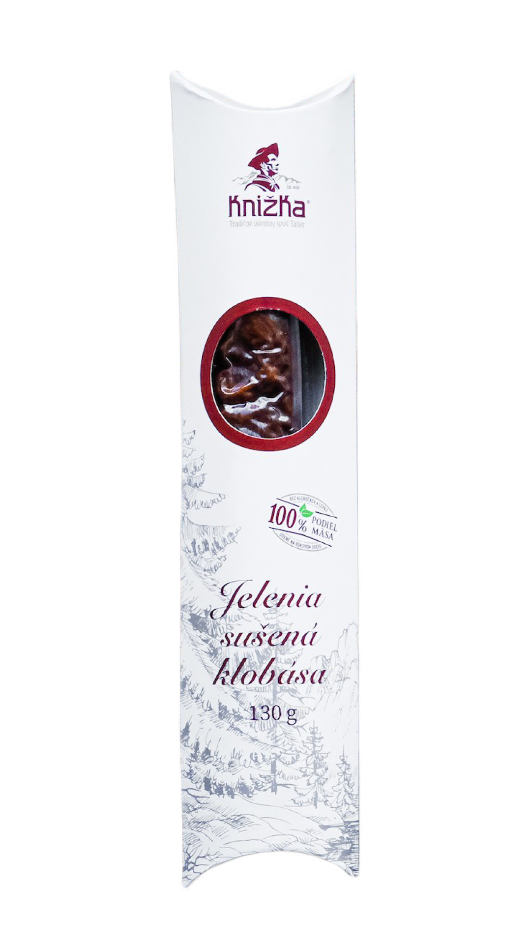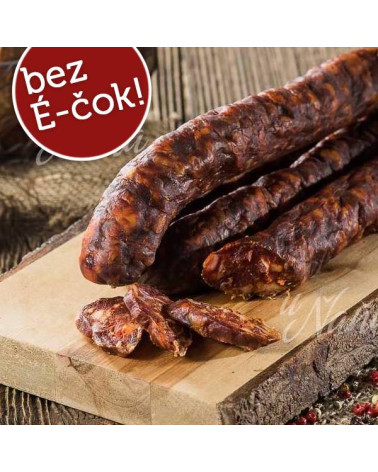 Lahodná pochúťka s výraznou divinovou chuťou, ktorá je doplnená jemnou dymovou arómou z bukového dreva. Vyrábaná tradičnými metódami údenia a sušenia, ktoré zabezpečujú autentickú chuť a kvalitné spracovanie. Vyrobená z výberového jelenieho a bravčového mäsa, dochutená prírodnými koreninami a sušená na vzduchu. V reze zaujme tmavogaštanovou farbou a viditeľnými tukovými zrnkami. Bez lepku, bez alergénov, len poctivé mäso a vôňa studeného dymu. Vákuovo balené.