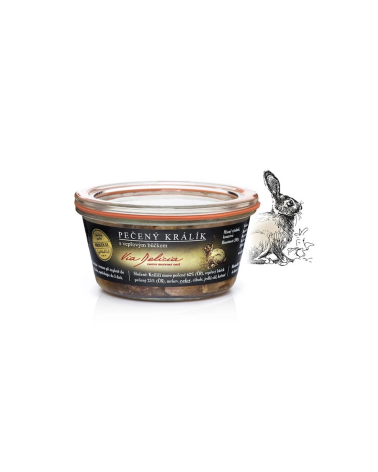 Lahodné spojenie dvoch druhov mäsa, ktoré spája jemnosť králičiny s plnosťou a šťavnatosťou bravčového bôčika. Tento produkt prináša tradičnú chuť vidieckeho nedeľného obeda zabalenú v praktickom pohári, pripravenú na servírovanie.