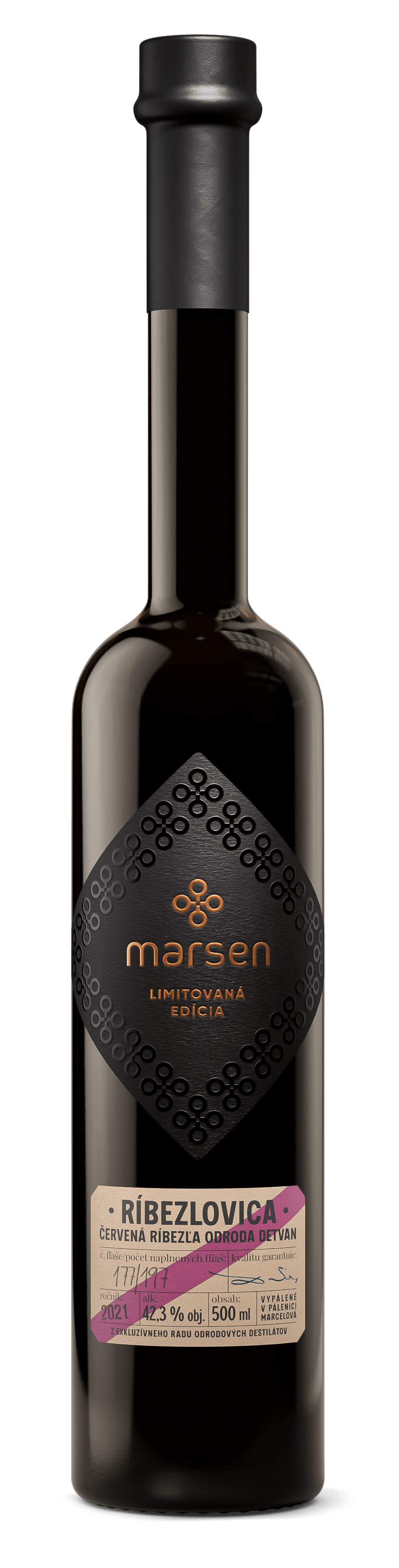 Zrodená z odrody červenej ríbezle Detvan, vyšľachtenej na Slovensku pre svoju skorú zrelosť a bohaté strapce, táto odrodová ríbezľovica je oslavou ovocia, ktoré v sebe nesie sviežosť, kyselkavosť a letnú energiu. Vyrábaná v limitovanej edícii, s dôrazom na ručné triedenie a precíznu destiláciu, prináša chuť, ktorá je teplá, ovocná a nezameniteľne ríbezľová.