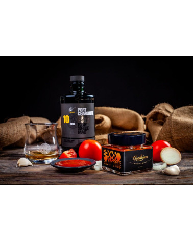 Grilovacia omáčka s dušou Islay. Táto výnimočná BBQ omáčka je postavená na základe Port Charlotte Scottish Barley whisky zo známeho škótskeho liehovaru Bruichladdich. Vďaka nej získava rašelinovú, údenú arómu, ktorá sa dokonale snúbi s paradajkami, melasou, cesnakom a čili. Výsledkom je hlboká, komplexná chuť, ktorá premení každé mäso na gurmánsky zážitok.