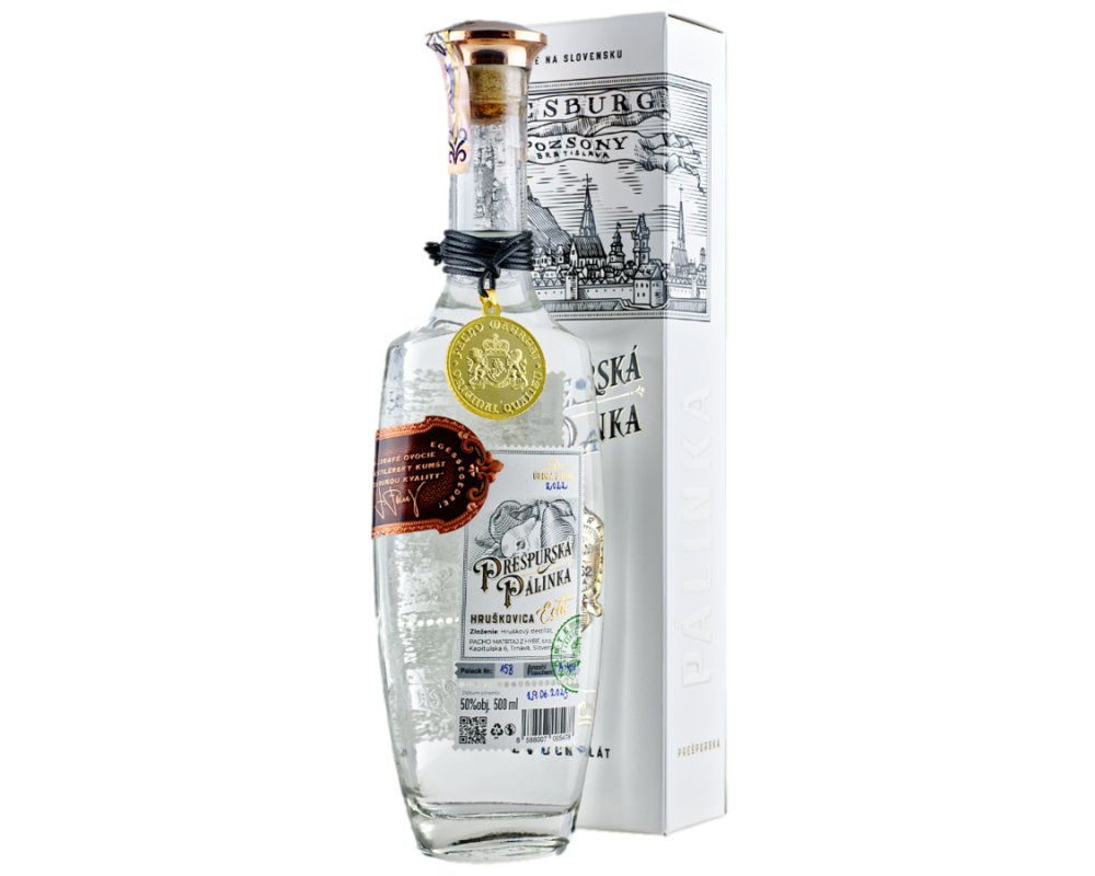 Vôňa a chuť: sladké hrušky, jemná ovocná aróma, elegantný záver Záver: hrejivý, čistý, s ovocným dozvukom Alkohol: 50 % Objem: 0,5 l Pôvod: Slovensko Zaujímavosť: Inšpirovaná multikultúrnym duchom historického Prešporka – Slováci, Maďari, Nemci a Židia si vraj všetci pripíjali na zdravie rovnakou pálinkou