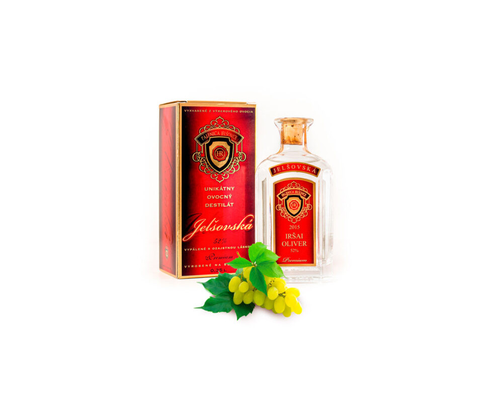 Jelšovská hroznovica Irsai Oliver 52% Destilát, ktorý vo vôni nepopiera svoj pôvod — odroda Irsai Oliver vyniká aromatickým profilom, pripomínajúcim kvitnúce vinice a ľahký jarný vánok. Ručne vyberané hrozno sa v Jelšovciach premieňa na špičkový destilát, ktorého charakter spočíva v harmonickej rovnováhe medzi ovocnou sviežosťou a hlbokým alkoholovým telom.