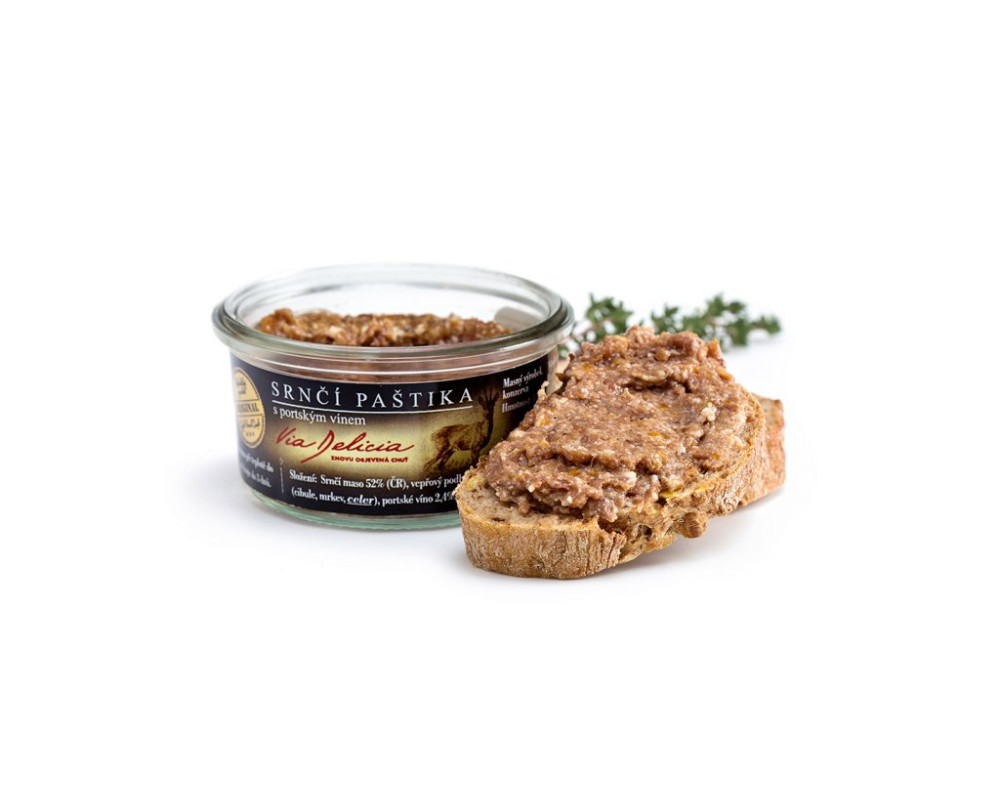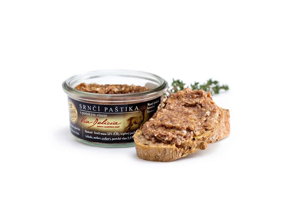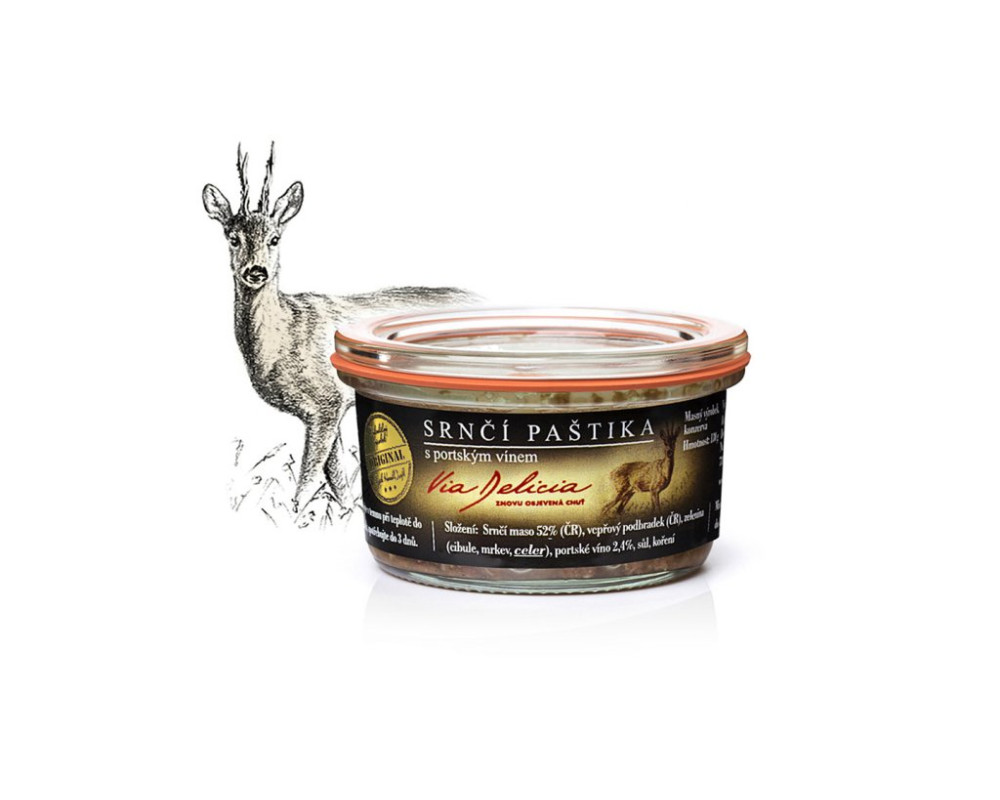 Elegantné spojenie jemne spracovanej srnčej pečene a portského vína, ktoré dodáva paštéte plnú, zaoblenú chuť s jemným sladkastým doznievaním. Ide o výnimočný delikatesný zážitok, ktorý si získa fanúšikov zverinových špecialít aj milovníkov netradičných kombinácií.
