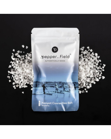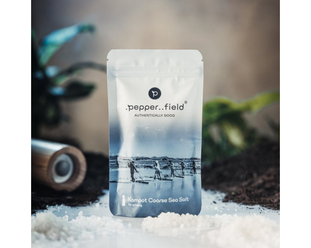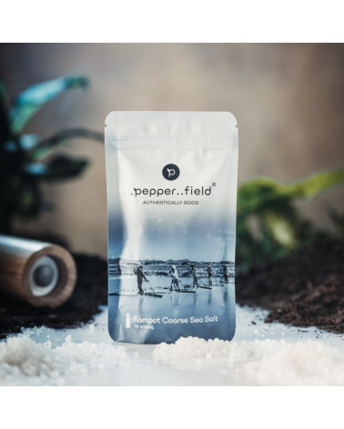 Prírodná hrubozrnná morská soľ zo srdca provincie Kampot dosahuje svoje výnimočné vlastnosti vďaka šetrnému a ekologickému spracovaniu, ktoré sa nemení už stáročia - jediné, čo poľnohospodári používajú na výrobu tejto soli, je čistá morská voda, slnko a vietor. Vďaka jedinečným mikroklimatickým podmienkam Kampotu je táto morská soľ obohatená o viac ako 70 minerálov a stopových prvkov, ktoré sa vďaka svojmu prírodnému charakteru ľahko vstrebávajú do jedla a majú priaznivý vplyv na ľudský organizmus.
