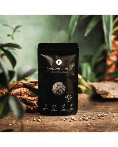 Takto upravené korenie stačí doma namočiť do tekutiny či oleja, z ktorého gulička znova nasiakne vlahu a vráti sa do podoby tesne po utrhnutí. Rovnako sa tak navracia aj jeho chuť, ktorá sa perfektne hodí k tmavému mäsu, do omáčok, cestovín, k svetlému mäsu, ale môžete si ho užívať aj len tak, trebárs ako kapary. Zrnká korenia exportované na váš stôl pochádzajú z produkcie malých rodinných fariem, ktoré k pestovaniu korenia pristupujú s poctivosťou a tradičnými postupmi, ktoré sú v tejto oblasti využívané stovky rokov.