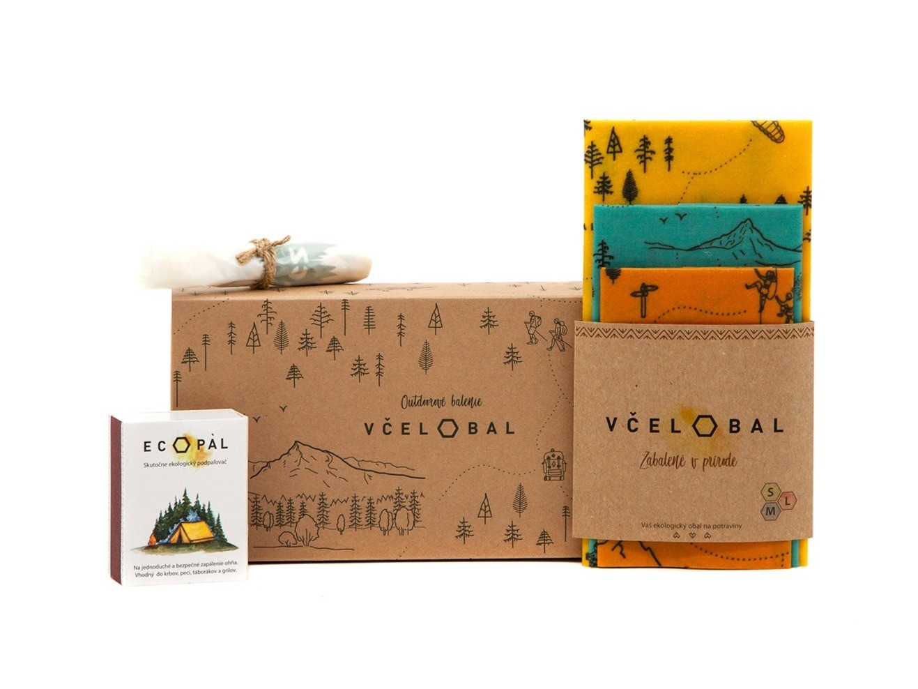 Balenie obsahuje Včelobaly veľkosti S, M, L, Ecopal - podpaľovač, s ktorým nezlyháte a pevné kompostovateľné vrecko na odpad.