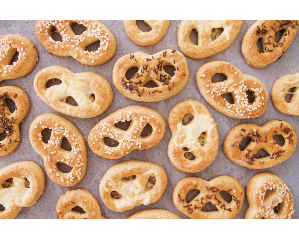 Syrové praclíky sú vhodné ako slaný doplnok na oslavy a rôzne iné udalosti a stretnutia. Krehké cesto obohatené o syr vytvára jemnú štruktúru chuti, ku ktorej jej prispieva aj ideálna kombinácia rôznych posýpok – rasca pre milovníkov klasiky, sezam ako obľúbená alternatíva a dozlatista upečená vrstva syra. Syrové praclíky je možné objednať podľa gramáže k okamžitej spotrebe.