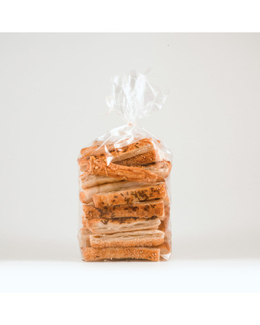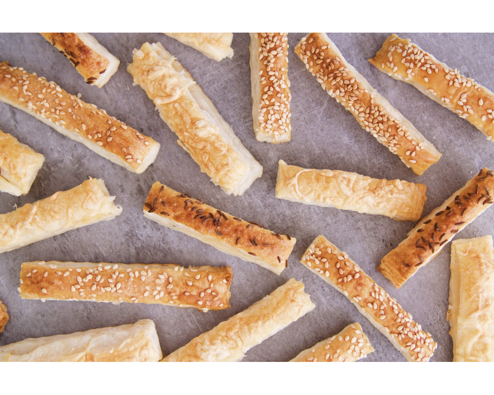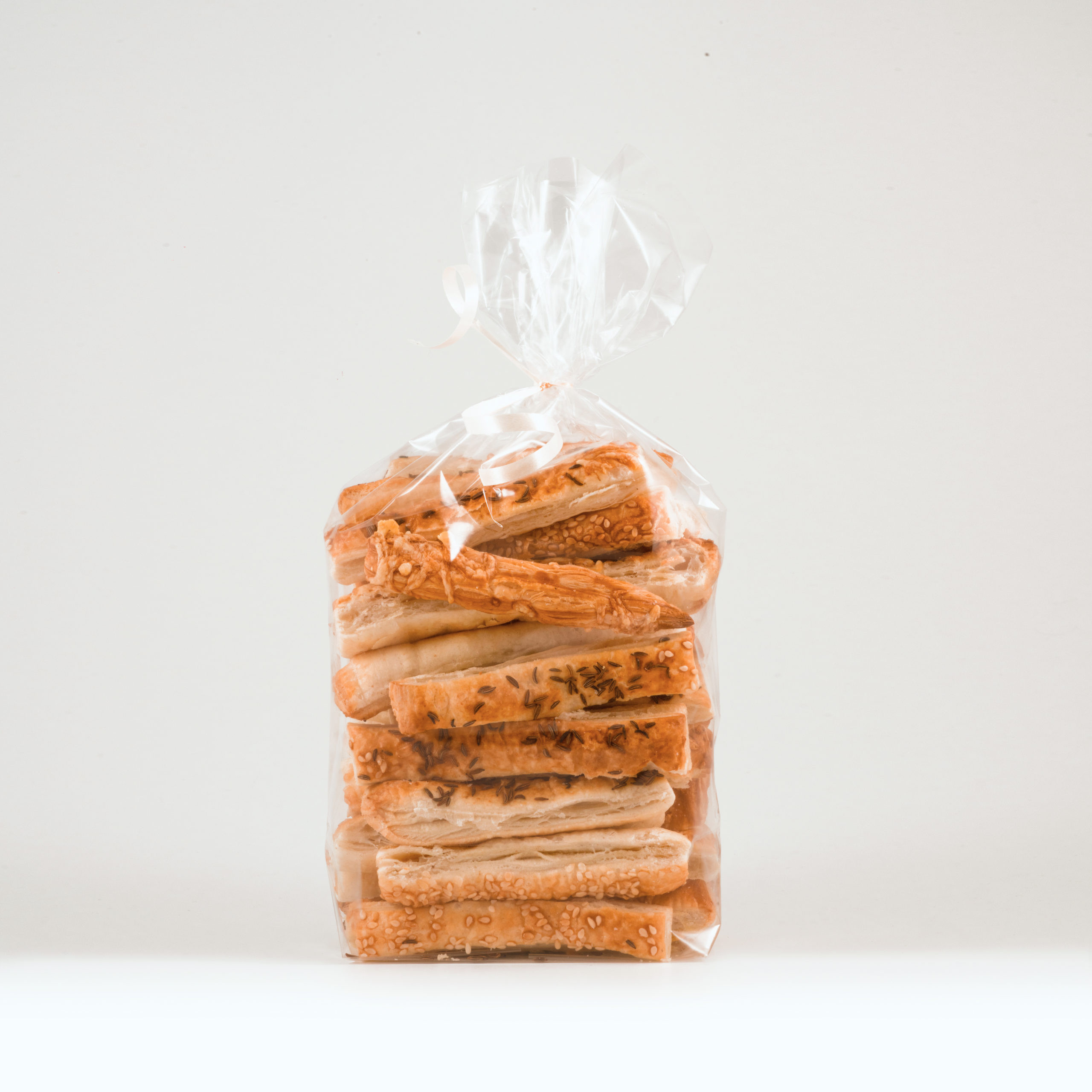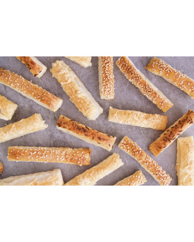 Lístkové tyčinky sú skvelým doplnkom na oslavy a rôzne iné udalosti a stretnutia. Ihneď si vás získajú vďaka svojej vôni, chrumkavému cestu a jemnej, vyváženej chuti, ku ktorej prispieva aj ideálna kombinácia rôznych posýpok – dozlatista upečená chrumkavá vrstva syra, rasca pre milovníkov klasiky a sezam ako známa alternatíva. Lístkové tyčinky je možné objednať podľa gramáže k okamžitej spotrebe.