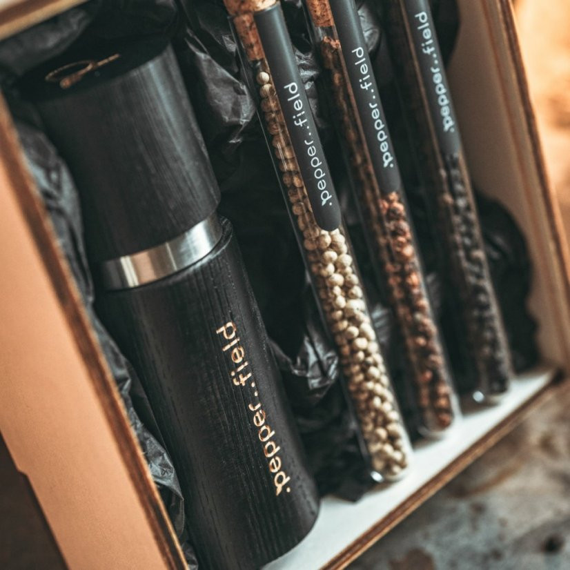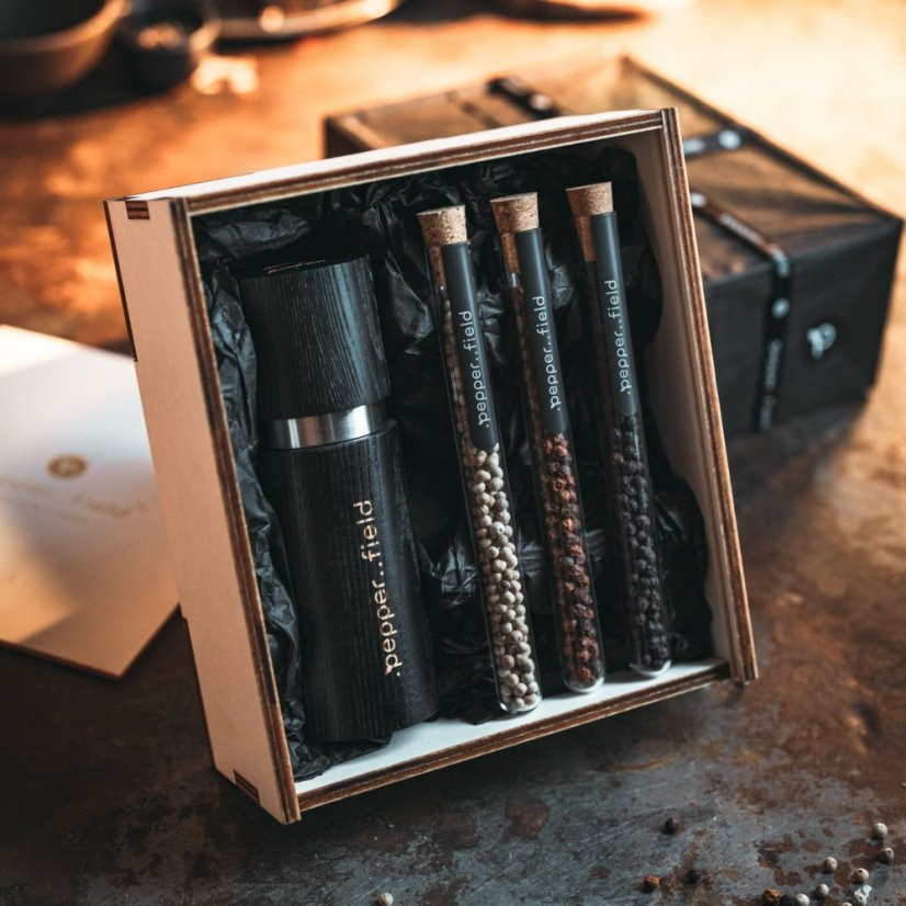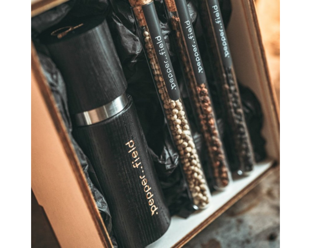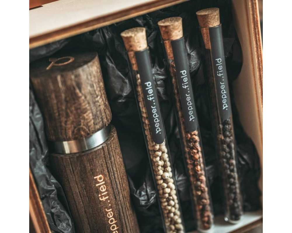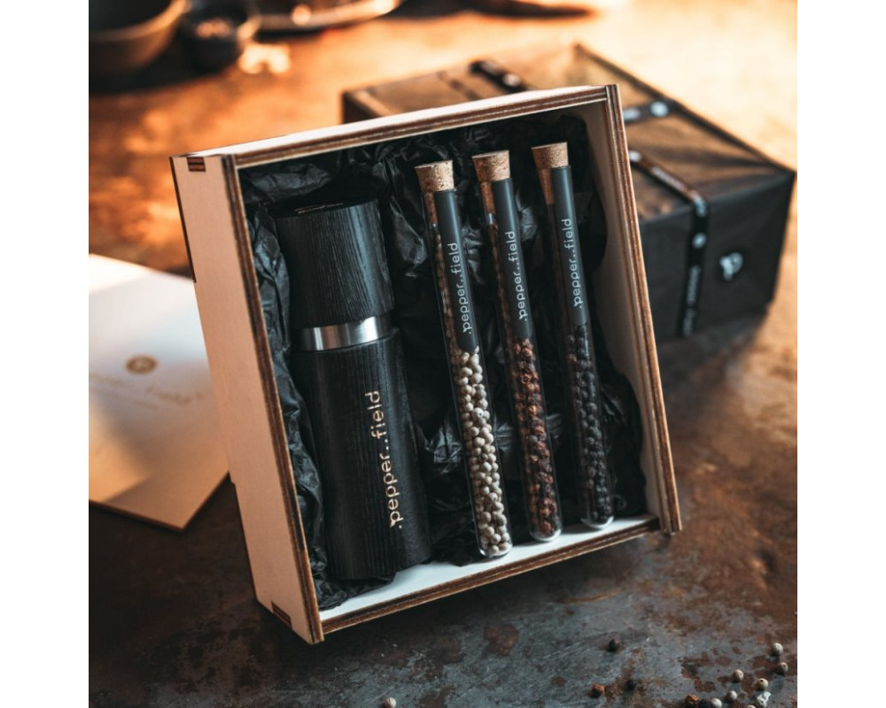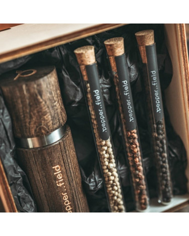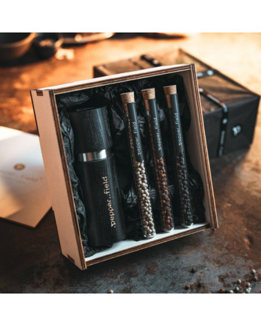 Kampotské korenie - sada skúmaviek s mlynčekom v darčekovom balení