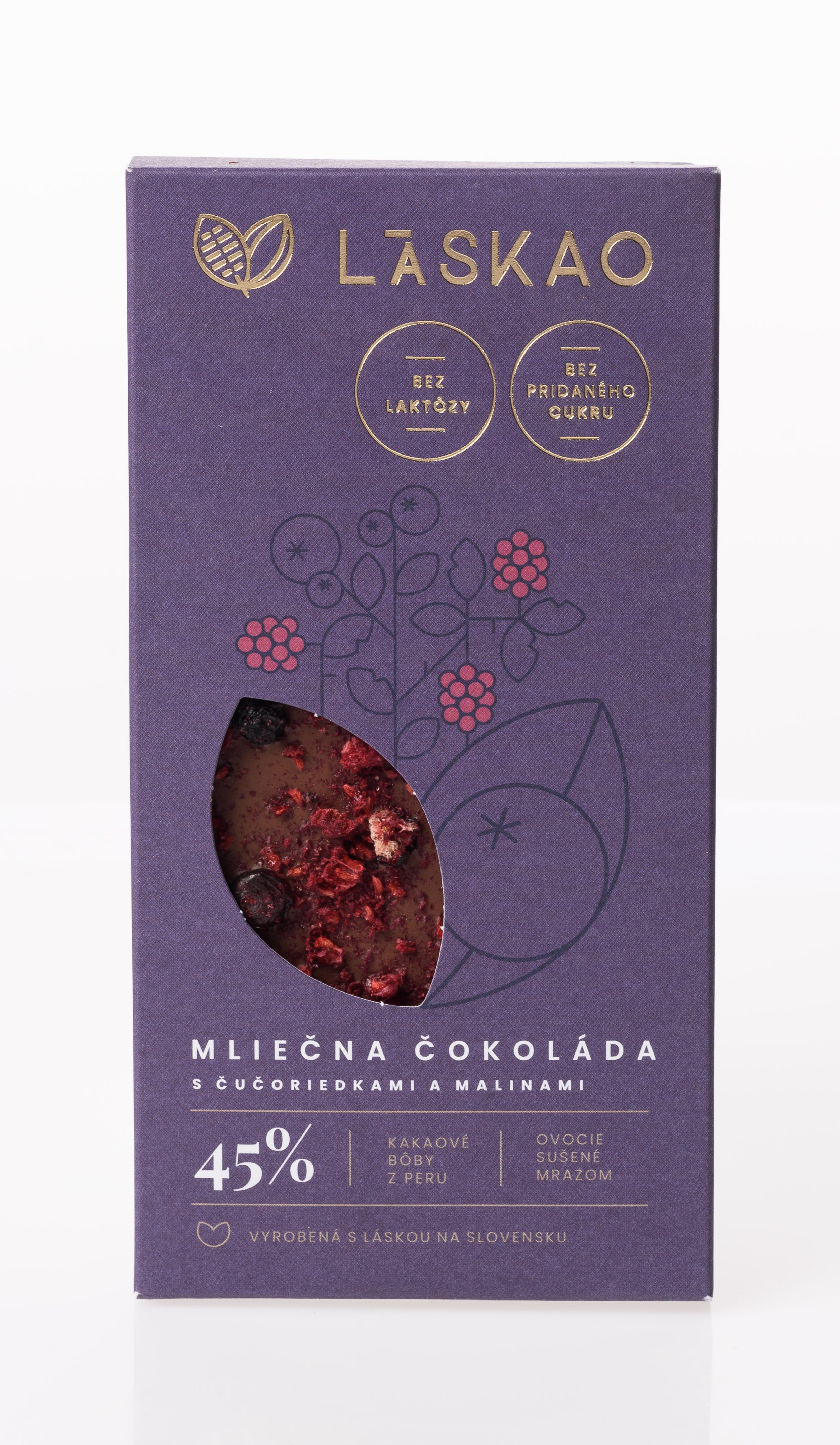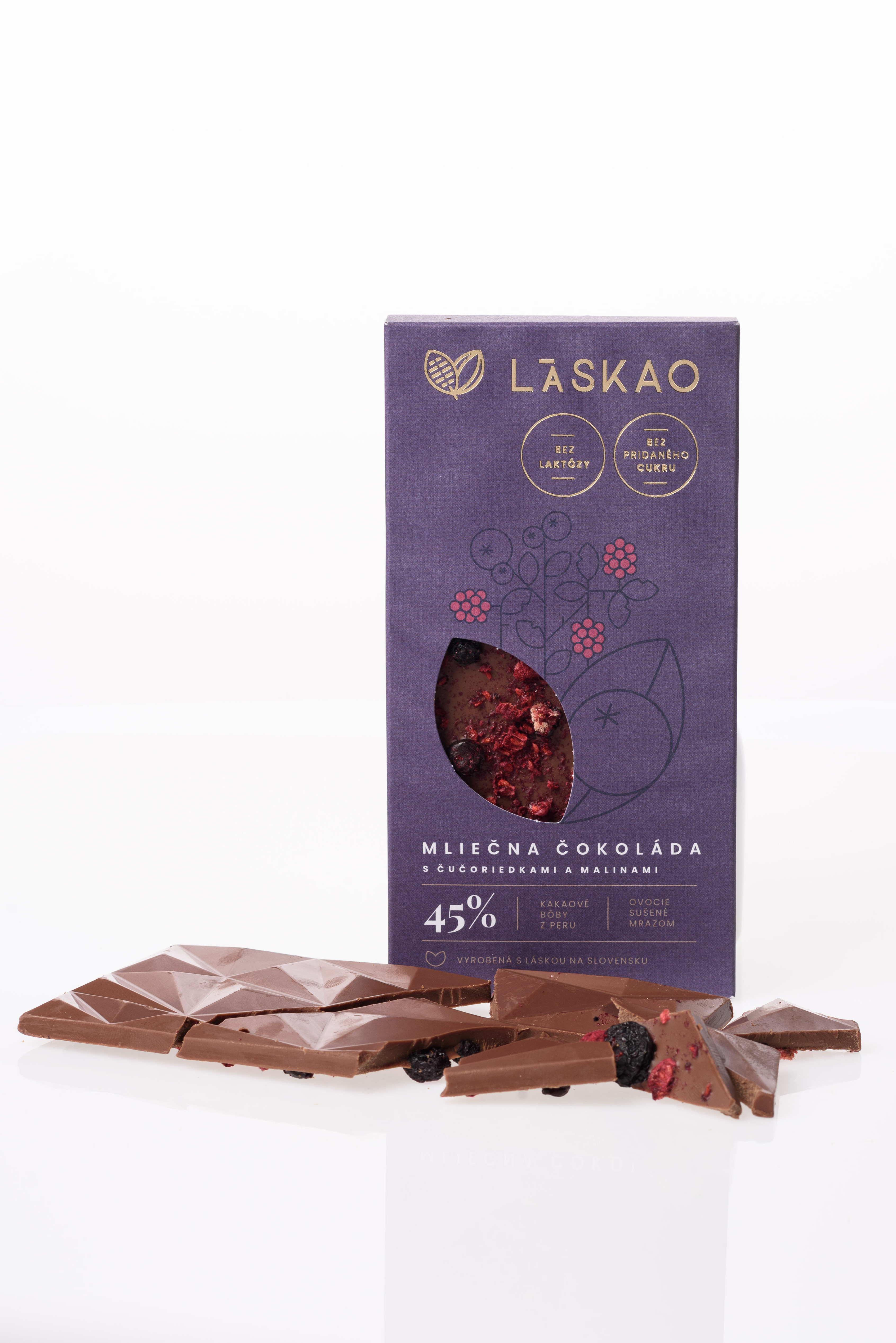 45 % Mliečna čokoláda s čučoriedkami a malinami