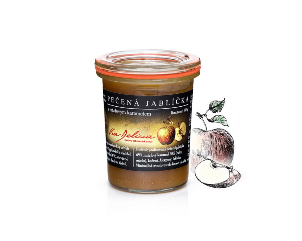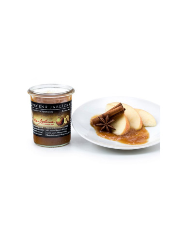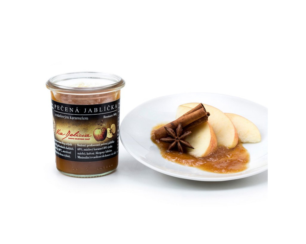 ZLOŽENIE prelisované pečená jabĺčka 69%, maslový karamel 30% (cukor, maslo), korenie