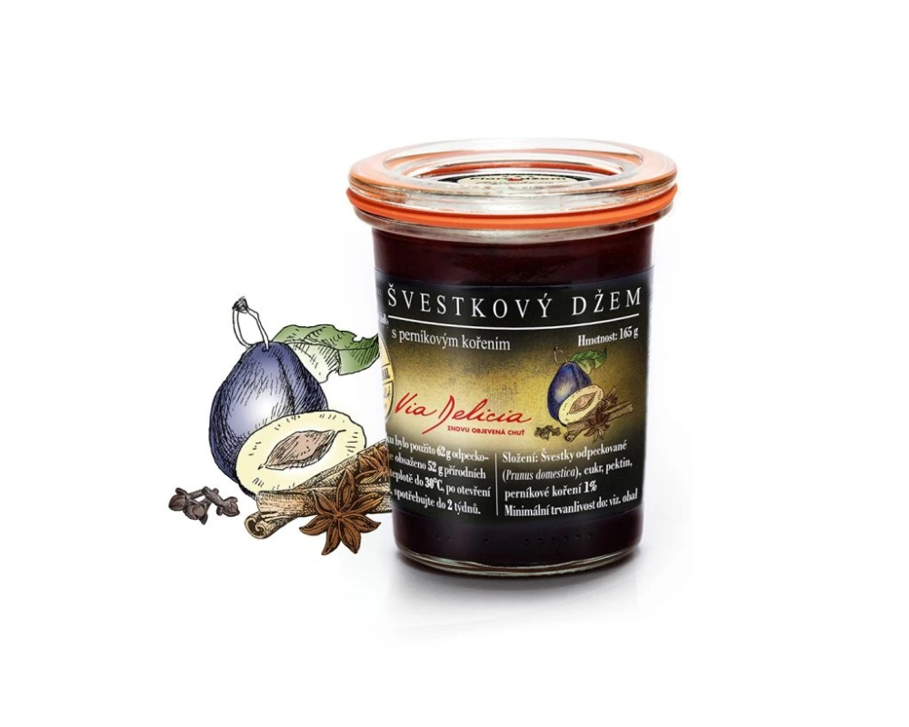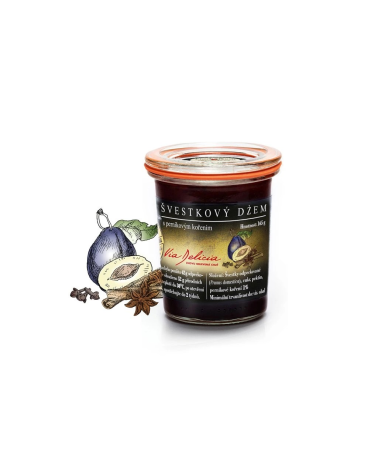Zloženie výrobku: slivky odkôstkované (Prunus domestica), cukor, želírujúca látka - pektín, perníkové korenie 1%