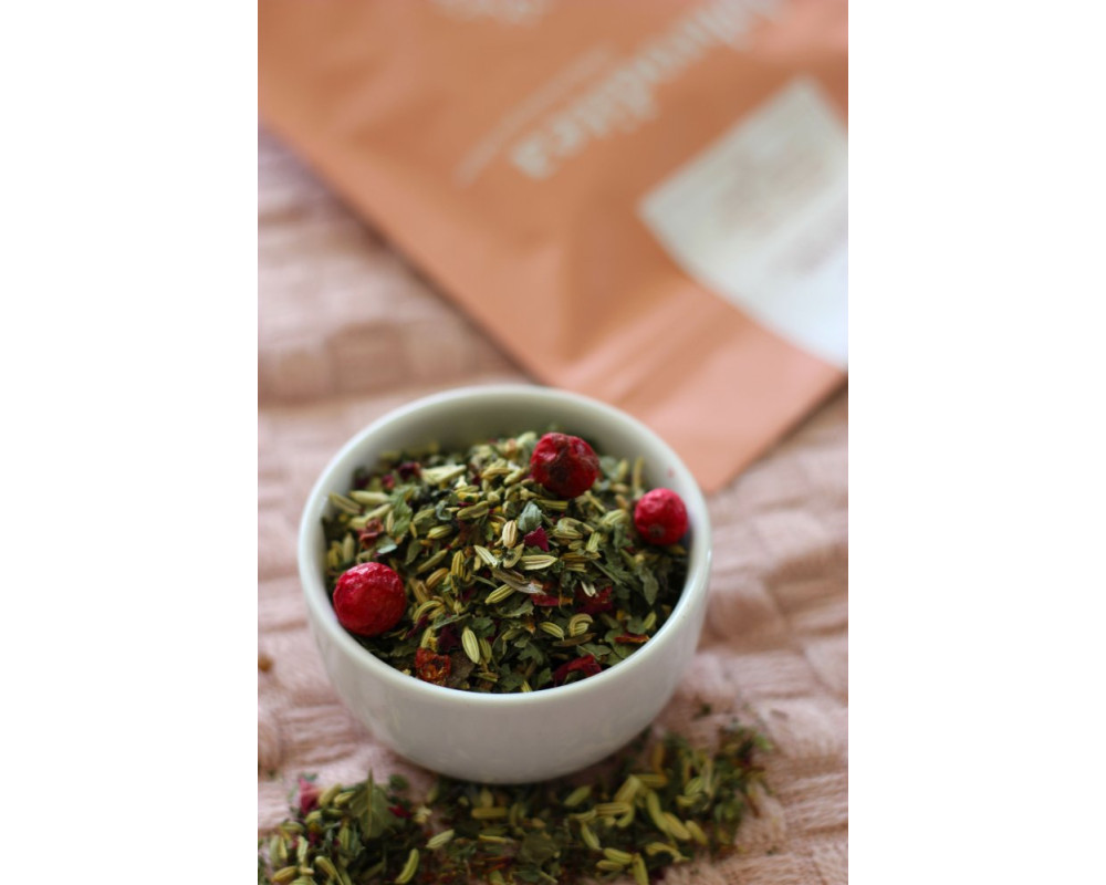 Zloženie: fenikel, medovka, mäta pieporná, sladké drievko, ruža, ríbezle