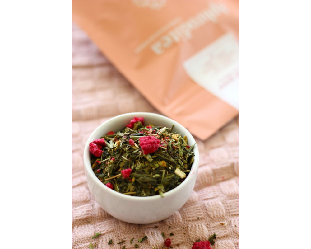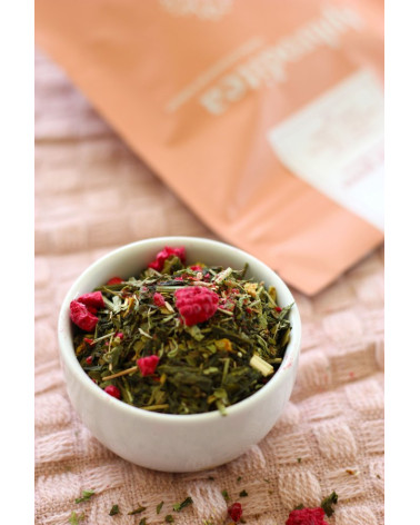 Zloženie: zelený čaj, mäta, citrónová tráva, citrusy, nechtík, maté, myrtovník, maliny, prírodná aróma