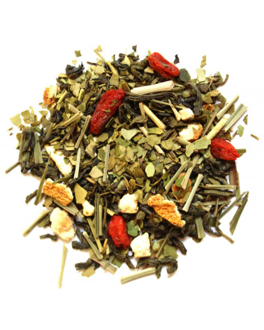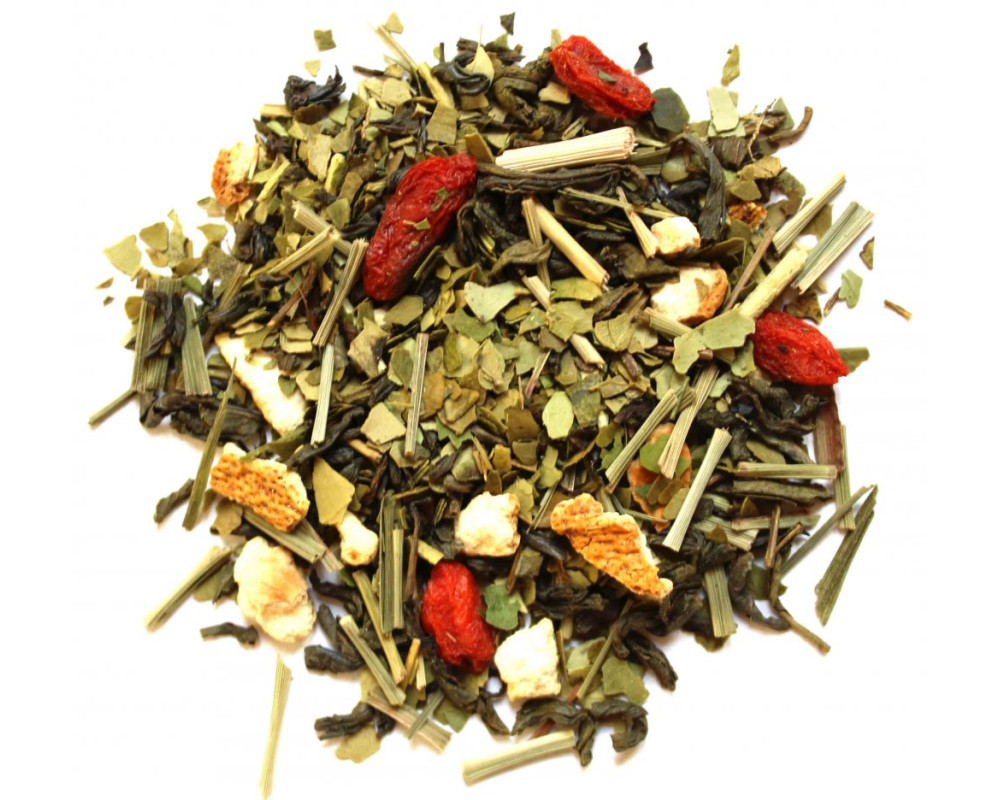 Zloženie: maté, zelený čaj, citrónová tráva, citrónová kôra, goji, prírodná aróma