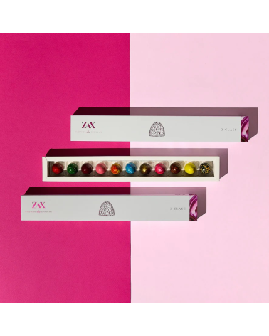 Čokoládová dielňa ZAX týmito prémiovými pralinkami plnenými rôznymi ingredienciami veľkolepo definuje ako môže vyzerať a chutiť inovácia vo svete praliniek. Dokonale tenká chrumkavá čokoládová šupka, ktorej ručne maľovaný povrch ukrýva krémovú plnku až 40-ich kombináciach sa len tak rozplýva na jazyku. Dokonalá harmónia medzi sviežosťou plniek a sladkosťou čokolády vám prinesie nezabudnuteľný gurmánsky zážitok.
