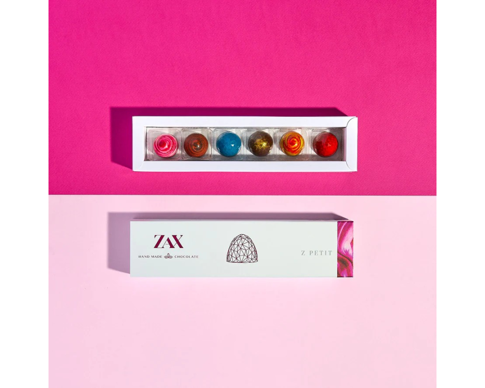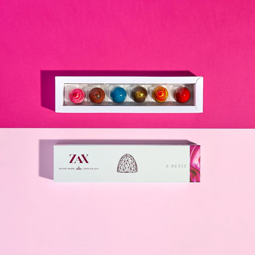 Čokoládová dielňa ZAX týmito prémiovými pralinkami plnenými rôznymi ingredienciami veľkolepo definuje ako môže vyzerať a chutiť inovácia vo svete praliniek. Dokonale tenká chrumkavá čokoládová šupka, ktorej ručne maľovaný povrch ukrýva krémovú plnku až 40-ich kombináciach sa len tak rozplýva na jazyku. Dokonalá harmónia medzi sviežosťou plniek a sladkosťou čokolády vám prinesie nezabudnuteľný gurmánsky zážitok.