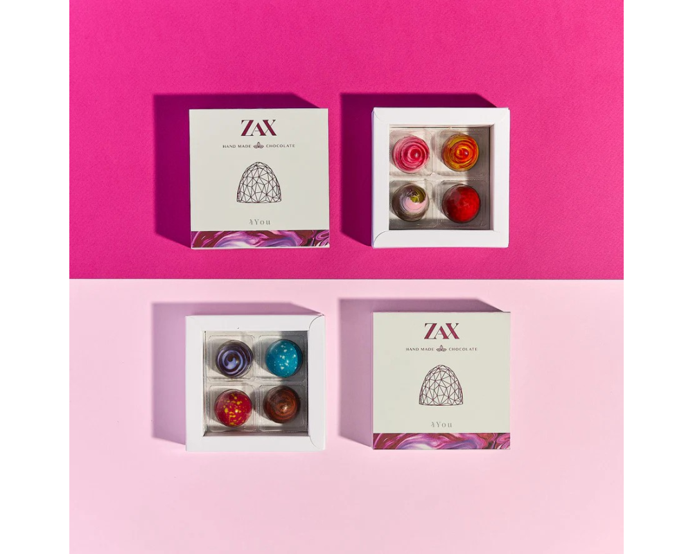 ZAX 4You odporúčame ako roztomilé prekvapenie pre vašich najbližších. Táto štvorica praliniek je taktiež vhodná ak chcete ochutnať naše nové príchute alebo ako mini firemný darček, ktorý pre vás vyrobíme s vašim firemným logom.