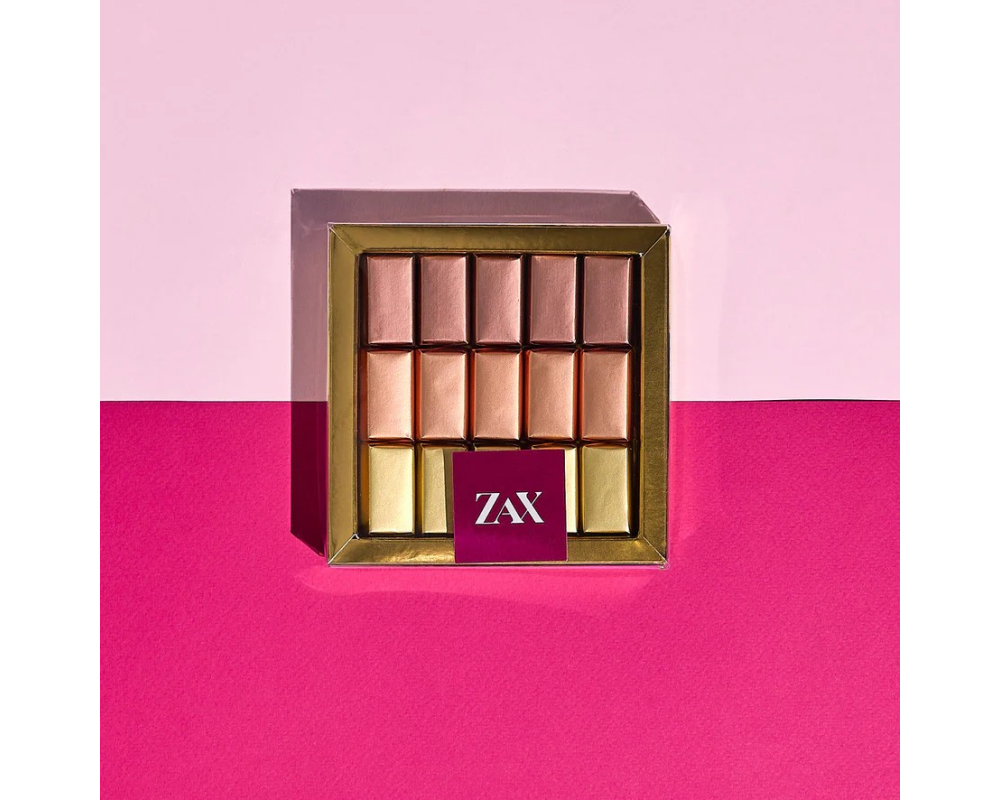 Ponúkame vám 15 starostlivo zabalených luxusných francúzskych praliniek v štyroch rôznych príchutiach. Okrem tradičnej mandľovej sme do našich „Secret“ praliniek schovali aj množstvo špeciálnych príchutí, ako chrumkavé ovocie, gianduju, obľúbenú kávu a mandle. Žiarivo zlatisté a bronzové farby balenia vás a vašich obdarovaných iste očaria.