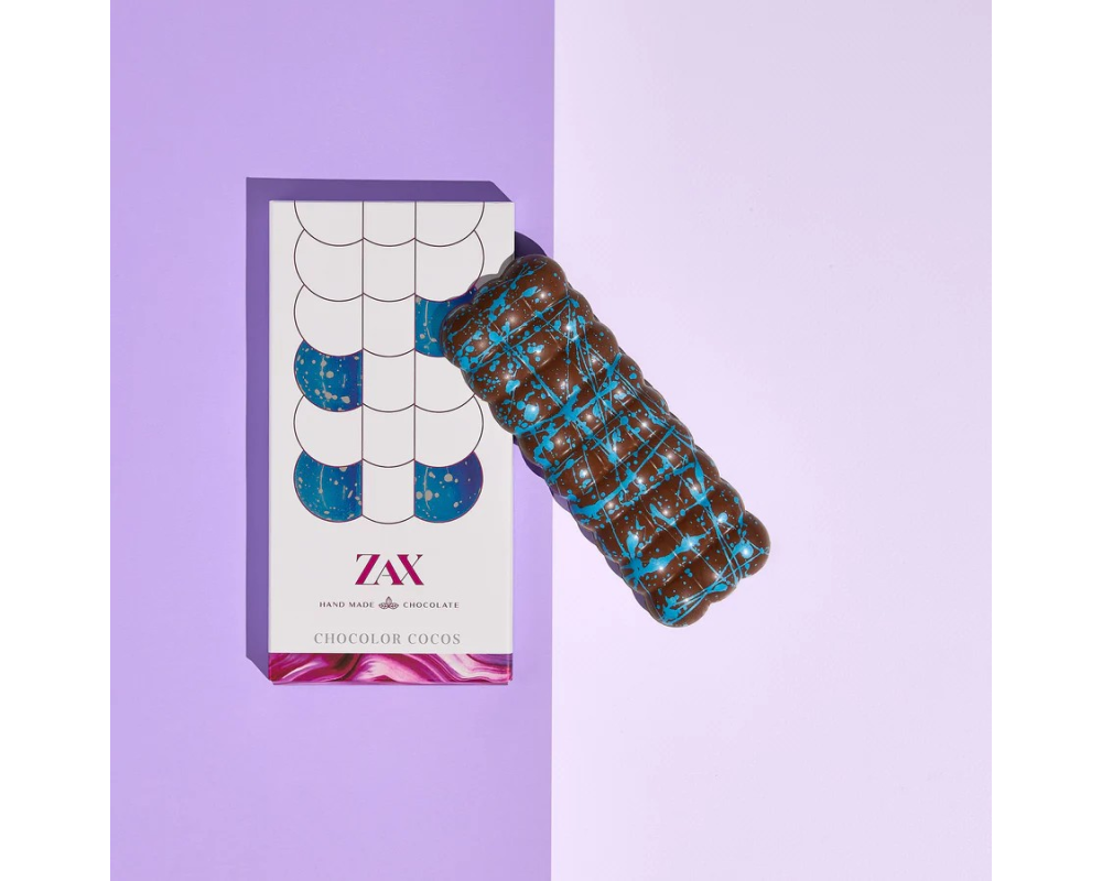 Ak ste milovníci plnených čokolád musíte vyskúšať našu CHOCOLOR COCOS! Pod krehkou horkou čokoládou sa ukrýva svieži kokosový krém, ktorého typická exotická chuť je v dokonalom kontraste s horkou čokoládou. Bublinkový dizajn je nielen príťažlivý, ale svojim tvarom pripomína pospájané pralinky. Tak sa zahryznite do kokosovo-čokoládovej maxi pralinky a zažite neopísateľný pocit slasti!